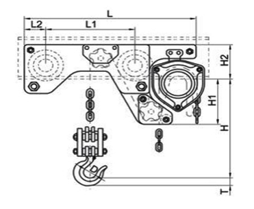 以往手拉葫蘆起吊重物后需要移動時(shí),要提前將手拉葫蘆固定在單軌小車上才能實(shí)現(xiàn)重物的移動,固定環(huán)節(jié)多且使用安裝麻煩。但現(xiàn)在有了低凈空手拉葫蘆,可以同時(shí)實(shí)現(xiàn)這兩個(gè)功能。只要將其固定在工字鋼上就可以實(shí)現(xiàn)重物提升后移動的需求。在綜合移動和提升這兩個(gè)功能的同時(shí),它還有效的提高了重物上升的高度,普通的手拉葫蘆只能將重物提升到罩殼下方,而低凈空手拉葫蘆將起重鏈條的移動軌跡設(shè)計(jì)了一個(gè)N型彎道,將吊鉤上升的方向從罩殼底部移動到了罩殼側(cè)方,這一特定的設(shè)計(jì)能使重物上升至離固定處近。而且它還具有還具有自重輕,手拉力小,經(jīng)濟(jì)實(shí)用等顯著特點(diǎn),特別適用于受空間限制的設(shè)備安裝及維修場合。